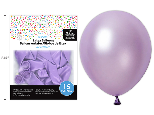 12″ Pearlized Round Latex Balloons – Lavender ~ 15 per pack