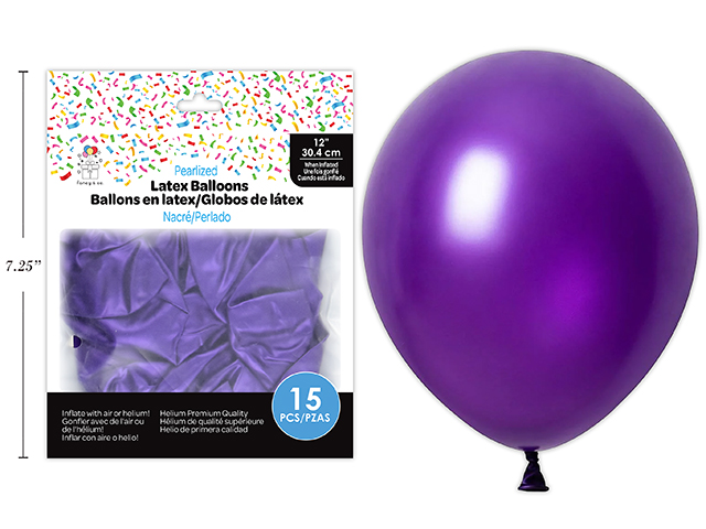 12″ Pearlized Round Latex Balloons – Purple ~ 15 per pack