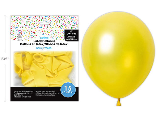 12″ Pearlized Round Latex Balloons – Yellow ~ 15 per pack