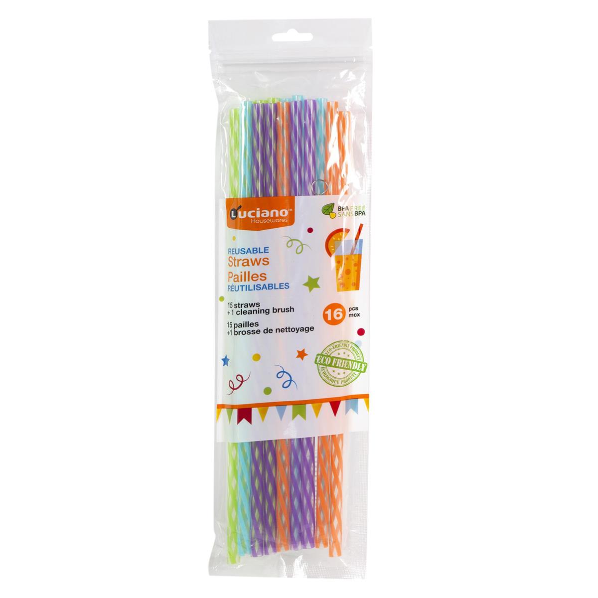 HomeShopDisposable Dinnerware & StrawsLuciano Reusable Straws 11″Long with Cleaning Brush – 15 pieces