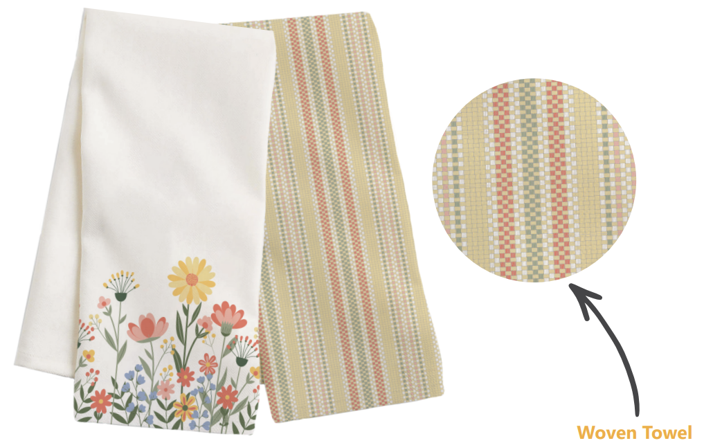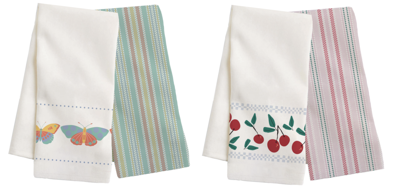 Printed & Waffle Weave Kitchen Towels ~ Pack of 2