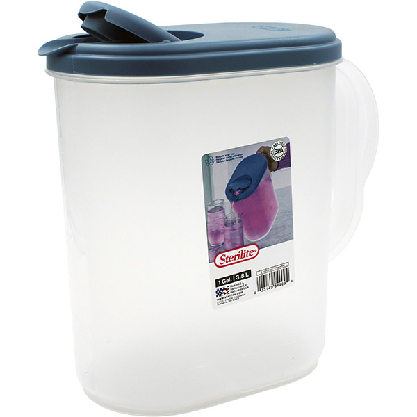 Sterilite Plastic Oval Pitcher with Push Top Lid ~ 1 Gal / 3.8L