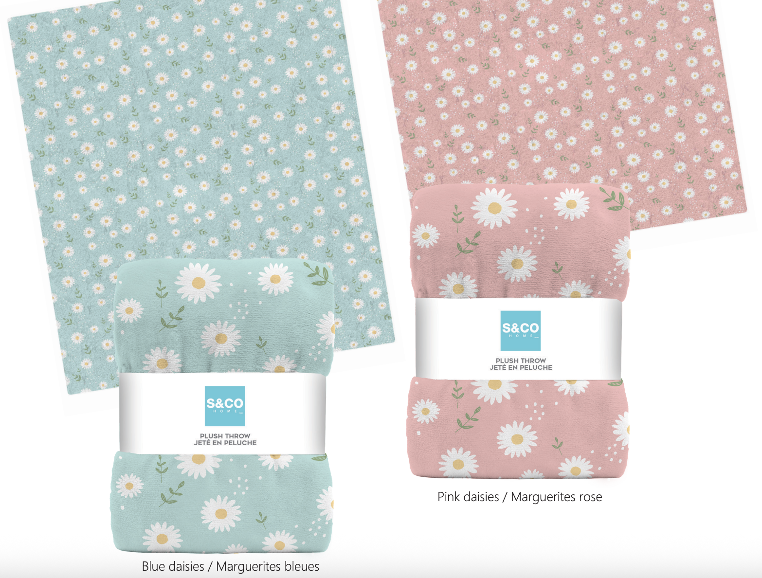Summer Printed Daisies Plush Throws ~ 48″ x 60″